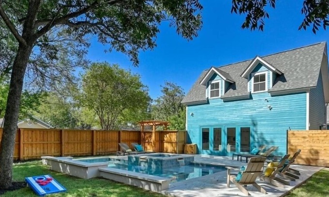 Just a short 5-minute walk to the main Georgetown Square- voted the most beautiful town square in Texas! Easily walk to tons of eateries, shopping, wine-tasting rooms, boutiques, and many great spots of photo ops! Inside the home, every room is a work of art with bold artwork, furnishings, vibrant colors, and tons of amazing details throughout. Professionally designed and decorated with guests in mind, this home and pool house has it all!