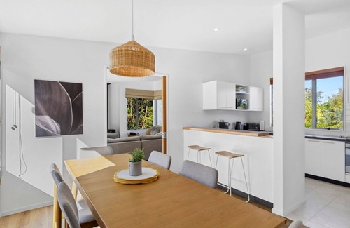 Escape to our serene Kaiteriteri retreat, nestled near pristine beaches, scenic walking and mountain biking tracks. This modern home features, spacious living areas with indoor-outdoor flow and 3 cozy bedrooms.