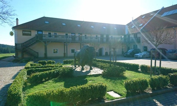 Bison Ranch offers a hot tub and free private parking, and is within 18 miles of Telč Historic Center and 18 miles of Chateau Telč. Among the facilities of this property are a restaurant, an elevator, and a shared kitchen, along with free Wifi throughout the property. The guest house has a sun terrace and a solarium. At the guest house, the units include a wardrobe, a TV, a private bathroom, bed linen, and towels. There's also a well-equipped kitchen in some units equipped with a microwave, a stovetop, and kitchenware. The rooms are equipped with heating facilities. For guests with children, the guest house features an indoor play area, outdoor play equipment, and a kids' club. Skiing and cycling can be enjoyed nearby, while a ski equipment rental service and a private beach area are also available on-site. Bus Station Telč is 18 miles from Bison Ranch, while Train Station Telč is 18 miles from the property. Ceske Budejovice Airport is 43 miles away.