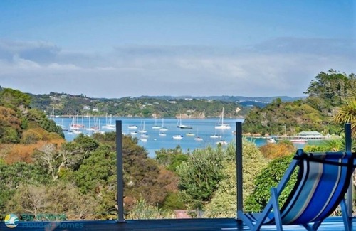 Black Bach holiday home, has a large open plan living area, which comprises of the kitchen, dining and lounge area, which flows out onto the expansive deck. The wraparound decks enjoy the morning and late afternoon sun as well as a delightful view over Matauwhi Bay.