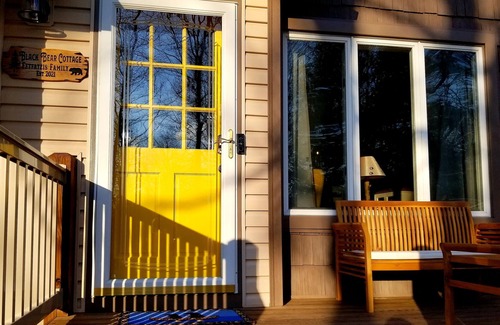 Black Bear Cottage is for those special individuals and families looking for an authentic, tastefully rustic space for a peaceful and refreshing getaway. We could easily cramp the cottage's style and squeeze in more guests, but we want the best for our guests at Black Bear Cottage. We aim for quality, not quantity. This is not your typical crammed short term rental kind of place. We as the owners also use this cottage as our vacation home and take great pride in keeping it homey and enchanting. The Cottage is furnished with gorgeous furniture including the farm house dining table and 3 Log framed beds. Outside, we have colorful Adirondack chairs around the fire pit, 2 charming chairs on the upstairs balcony with a charming outdoor rug, a beautiful outdoor table for outside eating and a spacious front porch with plenty of seating and a nice size Jacuzzi Hot Tub. But it does not end there, just look above while sitting on the comfy sofa and you'll be in awe of the beautiful antler chandelier. If you're finding any of this intriguing, keep reading with us...