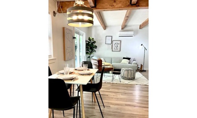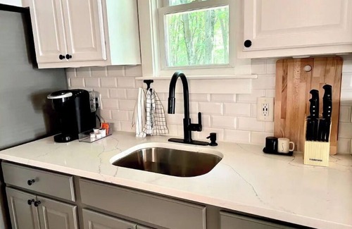 This storybook 3 bedroom 1 bathroom cabin is designed with a modern boho style. An expertly-designed interior space provides cozy nooks for reading and lounging. Tucked into the Pocono mountains this is the perfect getaway for nature lovers or anyone in need of a break. Head out to the nearby lakes and parks in the area and experience the locale’s wildlife, greenery, and seasonal charm. You'll be within close distance to ski slopes, parks, bars, and only minutes to Kalahari waterpark.