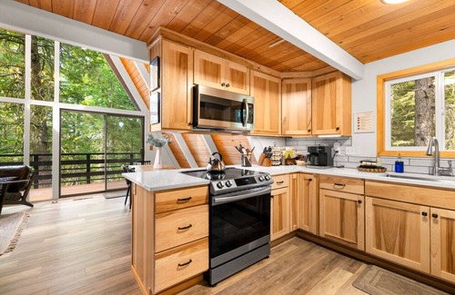 This modern, treehouse cabin at Black Butte Ranch is the perfect family retreat. Enjoy all the ranch has to offer: 6 different pools (including Paulina which is a 5 min. walk from our cabin), rec centers, hot tubs, golfing either of the two courses, horseback riding, hiking, biking, paddle boarding, and close proximity to outdoor fun, such as HooDoo Ski Resort. Looking to veg-out? Enjoy our floor to ceiling window view of the meadow through the forest trees or relax on one of our two decks.