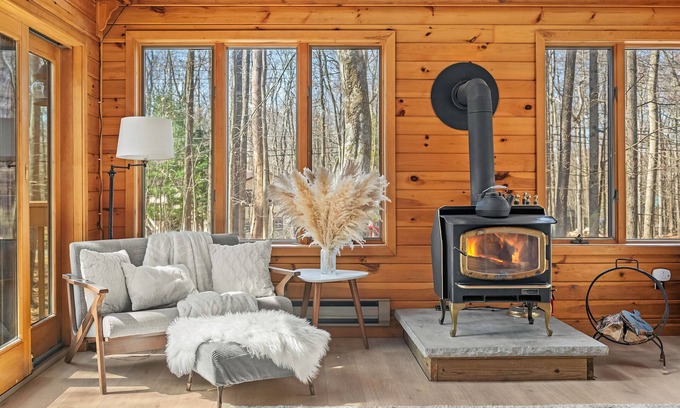 Black Deer Cabin- a cozy real cabin feel a block from the lake, boho rustic vibe is located in Pocono Lake. Black Deer Cabin- a cozy real cabin feel a block from the lake, boho rustic vibe provides accommodation, featuring Internet, Pet Friendly, Security/Safety, among other amenities. This Cabin features Internet, Pet Friendly, Security/Safety, to make your stay a comfortable one.