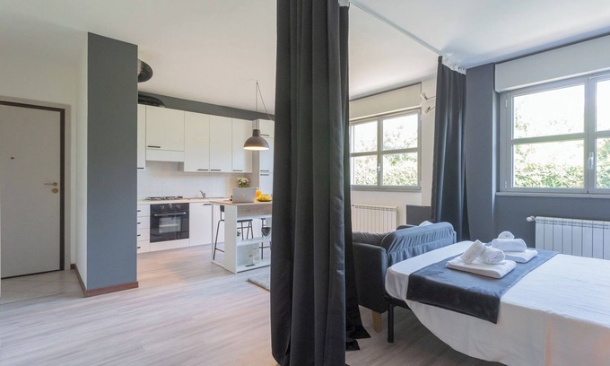 Located in Como, this welcoming apartment lets you experience it all. With the property's convenient covered onsite parking, you'll be ready to make the quick 5-minute drive to Castello Baradello or the 6-minute drive to Piazza Vittoria.If you're looking to expand your horizons and see other nearby locales, you can catch a train at Albate-Trecallo Station, a short 7-minute walk away.