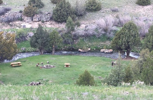 As long as burning restrictions allow, there is a beautiful park like setting a short walk down the hill complete with a rock firepit and plenty of seating to make s'mores or just talk about your trip (or make plans to come back). This property is also set up to bring horses along and the property is fenced with a lean to for horses.