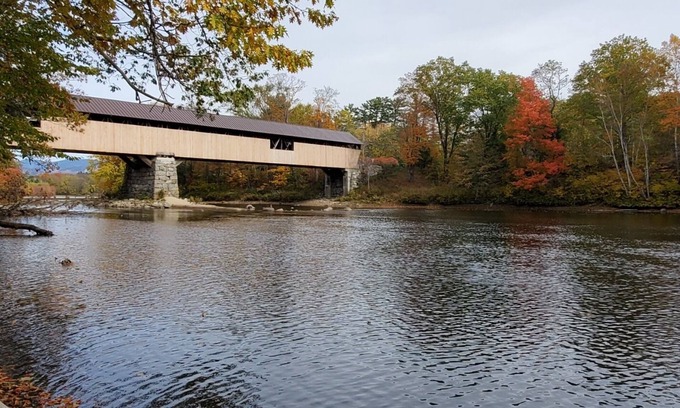 Recently built, family friendly cozy cabin, set on the beautiful Pemigewasset River looking at the historic Blair Covered Bridge.