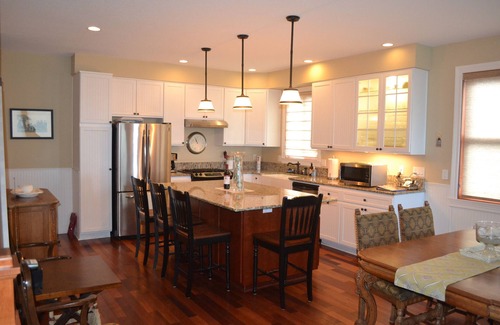 Our home is over 3000 square feet on three levels, four bedrooms, 3 baths, large lower level with additional sleeping space, beautiful round rock gas fireplace, washer and dryer, decks front and back, two car garage, cruiser bicycles, pool table, wireless internet, flat screen TV's. The house is very well appointed and well stocked with supplies.