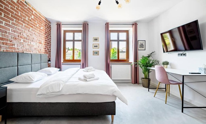 Just a 15-minute walk from Historic Karstadt and 0.8 miles from Gerhart Hauptmann Theater, Blick Apartments - Riverview Soft Loft features accommodations in Zgorzelec with a garden. Among the facilities at this property are private check-in and check-out and bicycle parking, along with free Wifi throughout the property. Görlitz Central Station is 2.5 miles away and Zoo Goerlitz is 2.6 miles from the apartment. Offering river views, this apartment also features a flat-screen TV, a well-equipped kitchen with a dishwasher, an oven, and a microwave, as well as 1 bathroom with a walk-in shower and a hair dryer. This apartment is allergy-free and non-smoking. A bicycle rental service is available at the apartment. Zittau Goerlitz University of Applied Sciences is 24 miles from Blick Apartments - Riverview Soft Loft, while City Hall Goerlitz is a 8-minute walk from the property.