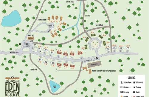 Block of 7 Lodges at Eden Reserve - For Groups is located in Williamstown, just 30 miles from Scudder Field and 13 miles from Mullins Wildlife Area. Both free Wifi and parking on-site are accessible at the vacation home free of charge. Outdoor seating is also available at Block of 7 Lodges at Eden Reserve - For Groups. The air-conditioned vacation home consists of 14 bedrooms, 7 living rooms, a fully equipped kitchen with a dishwasher and a kettle, and 14 bathrooms with a bath and a hair dryer. Towels and bed linen are offered in the vacation home. For added privacy, the accommodation features a private entrance. Guests can relax in the garden at the property. Doe Run Lake Park is 28 miles from the accommodation. Cincinnati/Northern Kentucky International Airport is 29 miles from the property.