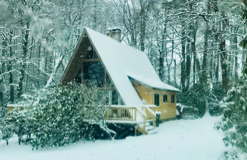 Gaze up at the bright stars while soaking in a hot tub on the deck right outside the back door or cuddle next to the fireplace after a long day on the numerous hiking trails winding through the Blue Ridge Mountains. A short hike from the cottage, through the woods, leads to The Mountain-to-Sea Trail. Huddle around a campfire in the fire pit and enjoy roasting marshmallows and s'mores. Plenty of firewood and fire starter provided!