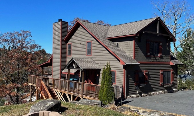 This spacious mountain home has enough room for 2 -3 families & kids! Kid area downstairs with game table! .7 miles to downtown Blowing Rock ( a 2 min drive)- it is possible to walk for those that can handle a hill or 2! This location is so close to everything Blowing Rock & the surrounding towns have to offer! Close to outlets for shopping & App Ski mountain is 3 miles away! This location is great for a big group that loves all the amenities of being close to downtown Blowing Rock. After a day of touring, & sightseeing you can come back to the lodge & make a great meal in the chefs kitchen & then soak in the hot tub on the deck! The main level has a king master suite with en-suite bathroom. There is also a powder room in this level , family room w/gas log fireplace & access to the wrap around deck w/ grill , hot tub & fire pit! The upstairs offers a king bedroom & a queen bedroom w/ a jack n Jill bathroom between the two. The lower basement level has a queen bedroom w/ set of twin bunk beds and a living area with a queen sleeper sofa! Great space in this cabin!