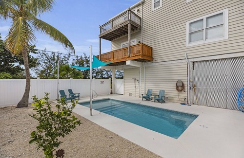 Nestled within the tranquil Grassy Key neighborhood, Blue Breeze offers an idyllic escape. This spacious 3-bedroom residence features a wrap-around deck, providing panoramic vistas of both the Gulf and the Atlantic. Blue Breeze boasts a newly constructed private pool, a 35 ft boat dock, ample boat trailer parking, and complimentary kayak access, ensuring there's something for everyone without leaving the confines of your home.
