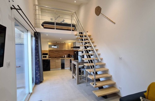 New 25 m2 apartment with mezzanine bedroom in a villa at the foot of Sainte Victoire. The garden, the terrace and the swimming pool offer a superb view of this magnificent site. The apartment is very bright and fully equipped and air conditioned. Parking is free in the enclosed courtyard. The shared swimming pool for the 3 apartments. Barbecue, lounge and garden deckchairs The accommodation is intended for 1 couple and is not suitable for children. Animals are not allowed.