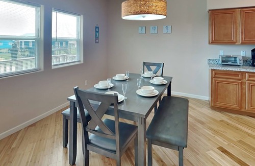 Inside, the Blue Doubloon features four cozy bedrooms and three full baths, comfortably sleeping up to seven guests. The open living area is bright and welcoming, with comfortable furnishings and a coastal vibe that makes you feel instantly at ease. Cook up a delicious meal in the fully equipped kitchen, complete with a dishwasher, oven, microwave, coffee maker, and all the essentials. Additional conveniences include a private entrance, and pet-friendly accommodations for up to two pets.