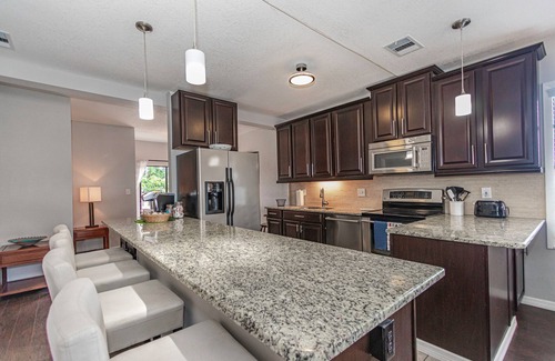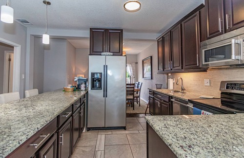 This sparkling vacation home is appointed with the whole family in mind. Plenty of off-street parking, a large private fenced yard, deck and lighted gazebo provide indoor and outdoor space for the entire family. The main house features a large living room with a 58” TV, 3 bedrooms (sleeps 7), 2 full baths, large dining room, and fully-equipped kitchen with separate coffee bar.