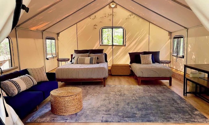 - This tent pairs well with The Whippoorwill's Nest (king bed), which is just down the hill, OR The Vireo's Nest (2 full beds) on the opposite side!