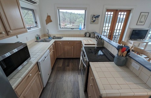 Located in Harpswell, this charming house is a dream. With 2 queen bedrooms overlooking the water, a queen sleeper sofa in the livingroom, and 1 1/2 bathrooms, our quaint property offers a cozy and comfortable stay for guests. Enjoy the convenience of amenities like a deck overlooking the water with it's own seasonal dock (Memorial Day - Mid October), heat, AC, WiFi, washer and dryer, and a fully stocked kitchen. Even a propane grill and a lobster pot for those yummy meals on the deck. Whether you're exploring the nearby shoreline in the summer with a kayak right from your own dock, hiking the Harpswell trails or simply relaxing in the peaceful surroundings, you're sure to make fantastic memories with a stay at Blue Lobster.