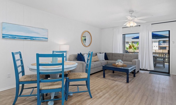 Upon entering the beautiful Kitchen and Living Room, the lovely Canal views are immediately visible through the windows. Enjoy family fun night after a long day at the Beach and stream everyone's favorite Movie on the comfy couch (Cable & Streaming provided)!