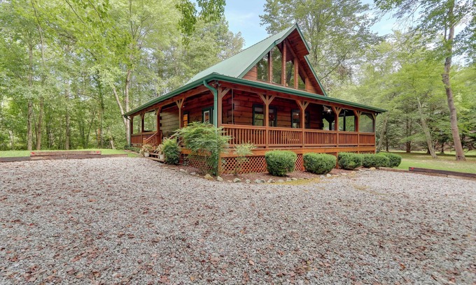Leave your worries behind for a relaxing getaway in the North Georgia mountains with this beautiful vacation rental as your home base. Nestled along Little Sugar Creek just a few miles from the heart of Blue Ridge, this 2-bedroom, 2-bath cabin offers easy access to outdoor activities and downtown fun! When you feel like relaxing, sip sweet tea on the wraparound porch or take a dip in the private hot tub. Keep the fun going into the evening with a backyard barbecue and s’mores by the fire pit!