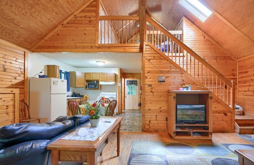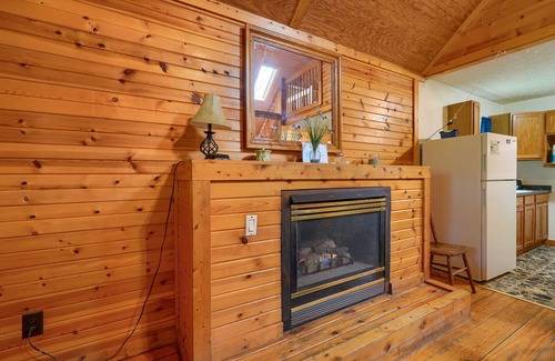 Nice comfortable cabin that sleeps four with one private bedroom downstairs and a loft bedroom upstairs. This cabin has a gas log fireplace, kitchen, hot tub, grill, firepit, wifi and DirecTV. Located in the heart of Hocking Hills!