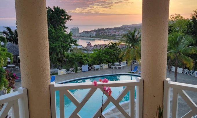 Centrally located in Ocho Rios, you can walk 5 minutes down the hill to the full shopping, restaurant and bar facilities of Ocho Rios. This condo is just over an hour and a half from the Montego Bay International Airport. It is directly opposite to the new state of the art Island Village Shopping and entertainment complex; and the Margaritaville and Ocean11 nightspot; a five minute walk to freshly caught fish/lobster meals; a five minute drive to the famous Dunn's River Falls, Konoko Gardens and Falls, Blue Hole, Bamboo beach, Mahogany beach, Mammee beach, the newest attraction Mystic Mountain and Dolphin's Cove, and a ten minute drive to Chukka Cove. Golf Courses are nearby. For great value, try restaurants in Island Village across the road. Its central location affords you with spectacular view of ocean, cruise ship pier and views of Ocho Rios. At the same time, your condo is in a quiet well maintained and gated spot.
