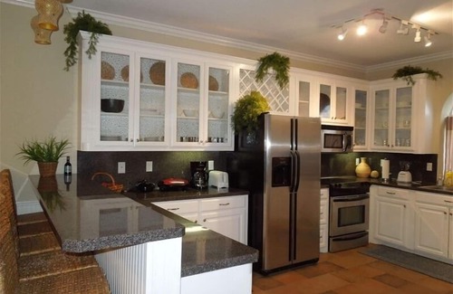 The house is a typical family style home with an open plan lounge-dining area and a spacious kitchen open to the living and dining area. It is equipped with full kitchen, with upscale appliances (fridge, dishwasher, built in microwave and flat top cooking range). The kitchen is fully equipped with cooking utensils; fine dinning ware (plates, bowls, glasses, wine glasses and silverware), coffer maker, bread toaster, sandwich griller, blender, etc.
