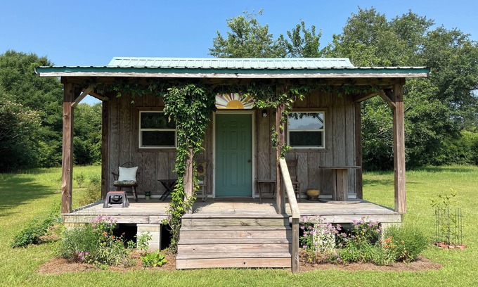 A quaint cozy cabin all to yourself. Ideal for one person but can comfortably accommodate a couple willing to share a full-size bed. Watch the cows from the porch and relax in a country environment. Minutes from Fairhope, 45 minutes from Gulf Shores beach. Quiet and private.