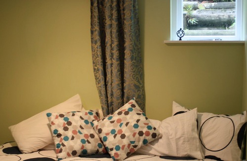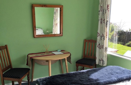 This is a lovely 3 bedroom house set in a spacious garden with great views over Tasman Bay. It's just 3.5km from town, but feels like your own slice of paradise. The top level has a large queen bedroom and connecting bathroom, along with kitchen, dining and lounge, flowing out through the conservatory to a deck with bbq and pizza oven. The lower floor has the second queen bedroom, and a single bedroom, along with the second bathroom. A single garage, and a lower garden completes the setting.