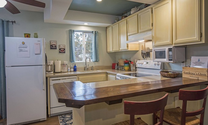 New to VRBO but more than 350 super positive reviews on another platform. The Blue Spruce is a charming, private second story guest house . It is accessed by exterior stairs, private entrance, and self check in. It is cozy, equipped with a full kitchen, sunny living room, 1 BD, and 1 Bath. Convenient location in a quiet neighborhood by downtown Bend, less than a mile to the river trail, coffee shops, brew pubs, and grocery. Great launching pad for mountain biking, hiking, skiing, golfing, fishing, whitewater and countless other adventures, you get the picture!