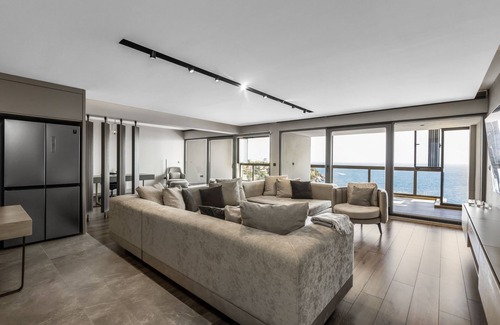 Spectacular blue views over the Mediterranean Sea horizon and Antalya mountain. Luxury in every room of this stunning penthouse. Situated on a cliff above the Historic Antalya Marina and next to Historic Old Town (Kaleici). Waking up here, spending time on the oversized double balcony, listening to the sea water waves while you gaze at the sparkling seascape is truly magical. Breakfast will taste all the more delicious with the sea view before you – serve it up on the oversize shaded balcony and tune in to waves lapping beneath the cliff. Sanctuary to unwind in serenity with luxury. Bright and air-conditioned, the living area is the perfect place for a sun break before heading out to explore.