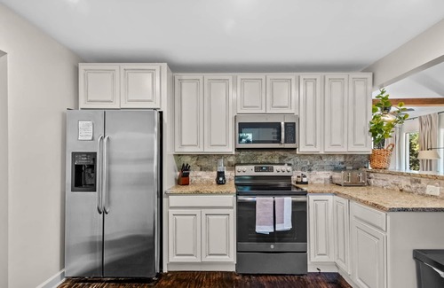 Welcome to the Blueberry Escape! This charming 3-bedroom, 2-bath lakefront home comfortably sleeps 10 guests, making it perfect for family getaways or trips with friends. The fully furnished kitchen is ready for all your culinary adventures, while the open-concept dining and living room is ideal for gathering, with cozy seating and a selection of board games. Step outside to a spacious deck, complete with plenty of patio furniture to lounge and take in the stunning lake views, or unwind by the fire pit. After a day of exploring, relax in the hot tub or sit out at the private deck down by the shoreline of Beaver Lake which is steps away from the back porch. Hickory Creek Marina is also only 3 miles down the road.