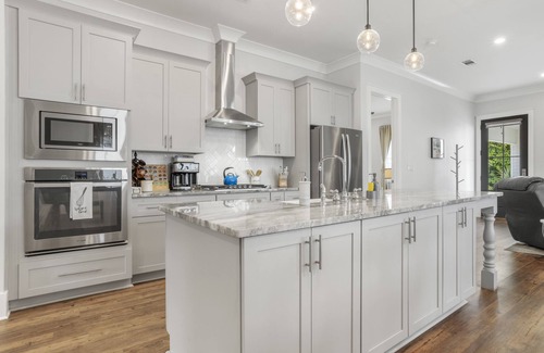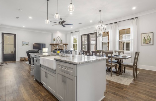 This idyllic 3-bedroom, 2-bathroom home sleeps up to 6 guests and offers a perfect blend of comfort, style, and modern amenities. The open-concept living area boasts plush seating, a large flat-screen TV, and French doors that that lead to the private backyard oasis. The fully-equipped kitchen features stainless steel appliances, a coffee bar, and all the essentials to inspire your culinary creativity.