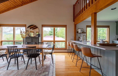 This 3-bed, 2-bath cabin on 5 acres offers stunning views and easy access to ski, golf, and lake activities. Enjoy light-filled interiors, a stone fireplace, gourmet kitchen, den/games room, screened-in porch, deck with grill and fire pit.