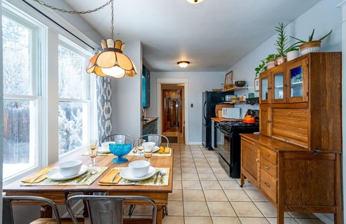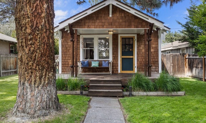 This adorable cottage was originally built in the 1920’s during Bend’s mill town heyday. This is a great spot for those who want to vacation in a cozy and sunny home close to popular restaurants, music, coffee bars and eclectic shops. Desert Moon is tucked off the street with a nice front porch and full fenced yard.