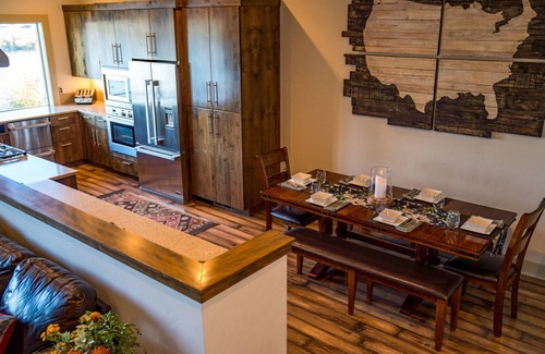 The Smokestack River House has three suites, three bathrooms and can sleep up to 6 guests, making it the perfect location for couples or even groups to come and stay! One suite is located on the lower level with its own private TV room, wet bar and riverfront patio. The master suite with a gloriously large bathroom and second guest suite are located on the upper level.