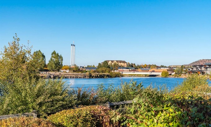 Welcome to the Smokestack River House! This luxury riverfront property boasts panoramic views of the Deschutes River and the Old Mill District. Step out to the river trail/bike path for a short walk or ride to the shops at the Old Mill and the Les Schwab amphitheater or simplyenjoy the scenic trail along the river.