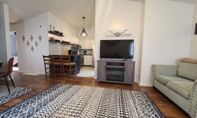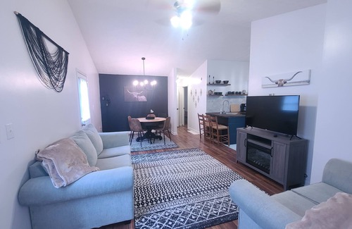 Home includes wifi, rokus, and cable. Coffee and tea bar with the necessities, 1 car driveway, can park in front of the house and parking across the street for extra parking. There is also a fire pit (logs not included) and a charcoal grill.
