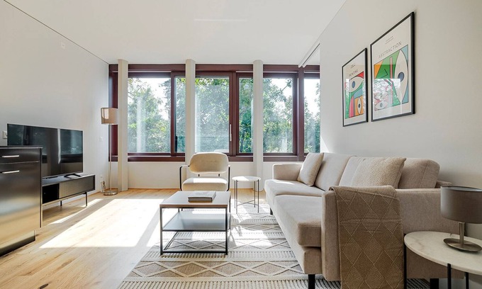 Thoughtfully designed with bespoke finishes, modern furnishings, and a fully equipped kitchen, you’ll enjoy that “I’m home” feeling with this Blueground apartment. Whether you’re lounging in your spacious living room streaming the latest and greatest entertainment on the smart TV or premium wireless speaker, or getting some well-earned rest on the superior quality mattress with luxury linens, you’ll fall in love with everything this Basel-Vorstaedte apartment has to offer.