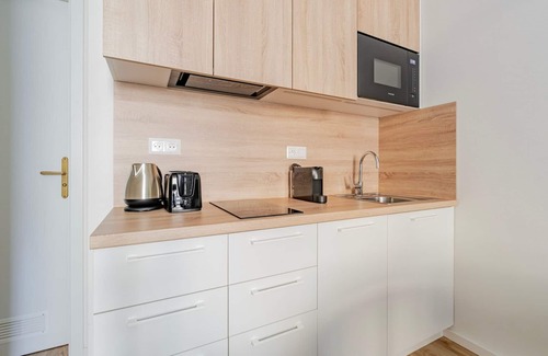 In this apartment, you’ll find a thoughtfully designed space complete with beautiful furniture and a fully equipped kitchen in this studio property. And, thanks to our superior quality mattresses, luxury linens, and towels, you can relax knowing you’ll always feel comfortably at home. When you’re ready for some fun, you can take in the Prague vibes or bring the entertainment to you with the premium wireless speaker or smart TV. This apartment also offers in-apartment laundry.