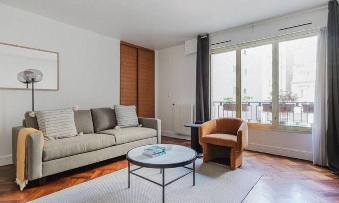 Thoughtfully designed with bespoke finishes, modern furnishings, and a fully equipped kitchen, you’ll enjoy that “I’m home” feeling with this Blueground apartment. Whether you’re lounging in your lovely living room streaming the latest and greatest entertainment on the smart TV or premium wireless speaker, or getting some well-earned rest on the superior quality mattress with luxury linens, you’ll fall in love with everything this École-Militaire apartment has to offer.