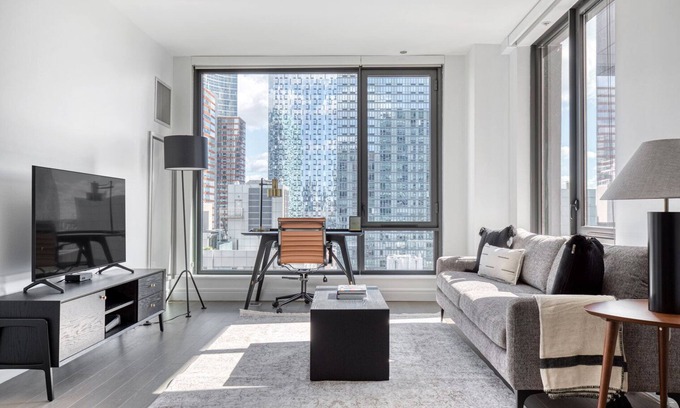 This furnished apartment is located in Long Island City, a neighborhood with amazing East River views. Nowadays, the area has become one of the best downtown Manhattan alternatives. Here, locals can enjoy a mix of activities from shopping on Jackson Avenue to indoor arts entertainment at MoMA PS1. Long Island City is also filled with modern public green spaces ideal for a stroll or jog. Grand Central Station is only a 20-minute subway ride away.