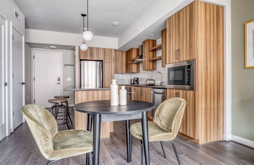 Thoughtfully designed with bespoke finishes, modern furnishings, and a fully equipped kitchen, you’ll enjoy that “I’m home” feeling with this Blueground apartment. Whether you’re lounging in your pretty living room streaming the latest and greatest entertainment on the smart TV or premium wireless speaker, or getting some well-earned rest on the superior quality mattress with luxury linens, you’ll fall in love with everything this Lyon Village apartment has to offer. This apartment also offers in-apartment laundry.