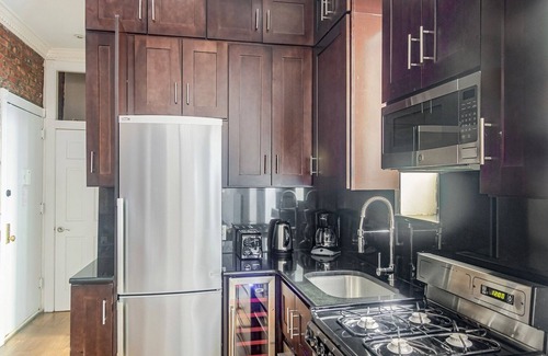 This furnished apartment is located in Nolita, a trendy neighborhood in Lower Manhattan. The name is shorthand for "North of Little Italy" among New Yorkers, who love this area for its dynamic character and fantastic shopping scene. Martin Scorsese grew up in Nolita, and it has also been home base for celebrities as diverse as Iman, Moby, and Gabriel Byrne. There is a diverse dining scene in the neighborhood, as well as plenty of bars and clubs. Nolita is served by several subway lines and bus routes, making it easy to get anywhere in the city from your new home.