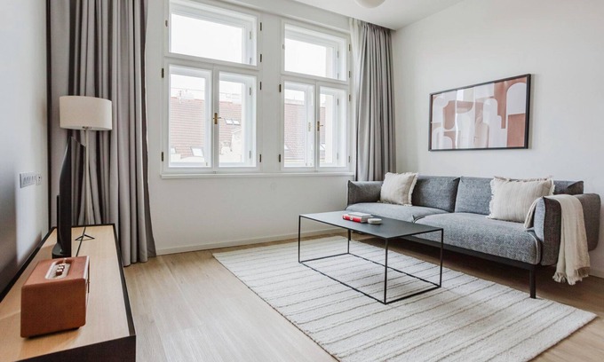 Show up and start living from day one in Prague with this roomy one bedroom apartment. You’ll love coming home to this thoughtfully furnished, beautifully designed, and fully-equipped Vinohrady home . (ID #PRG33)