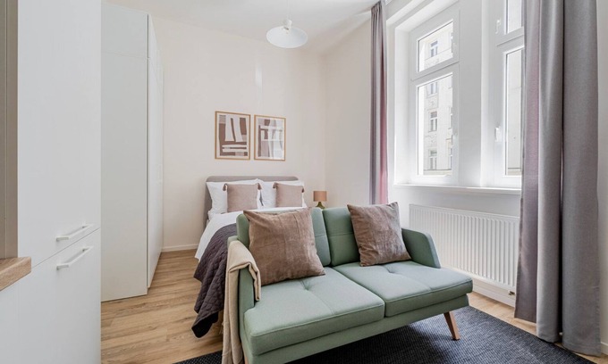 Gorgeous furniture, fully equipped kitchen, smart TV, and a premium wireless speaker are just a few of the amenities you’ll find inside this studio apartment. Ideally located in Prague, you’ll find a lot to love outside as well. When you’re ready to relax, you’ll be happy to discover every bedroom comes with superior quality mattresses. We handle everything so you can simply show up and start living. This apartment also offers in-apartment laundry.