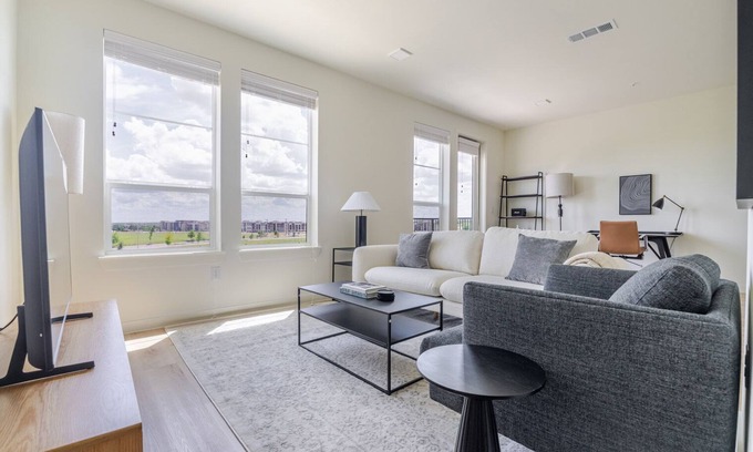 Thoughtfully designed with bespoke finishes, modern furnishings, and a fully equipped kitchen, you’ll enjoy that “I’m home” feeling with this Blueground apartment. Whether you’re lounging in your comfortable living room streaming the latest and greatest entertainment on the smart TV or premium wireless speaker, or getting some well-earned rest on the superior quality mattress with luxury linens, you’ll fall in love with everything this Round Rock apartment has to offer. This apartment also offers in-apartment laundry.