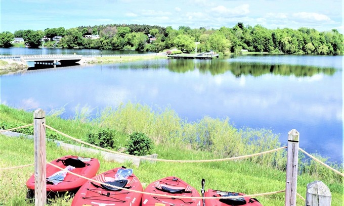 Step out onto your private attached patio & enjoy your morning coffee. Hear the birds & nature that surrounds you while enjoying the sun glistening on the water. Grab a kayak & embark on a tranquil experience; with lake access only a .3 mile walk, or take a bike stroll with our free rentals! Come back to a roaring campfire where s'mores, games & dancing in the moonlight is always welcome. End your evening lakefront on a plush bed with various entertainment options & blackout shades in every room.
