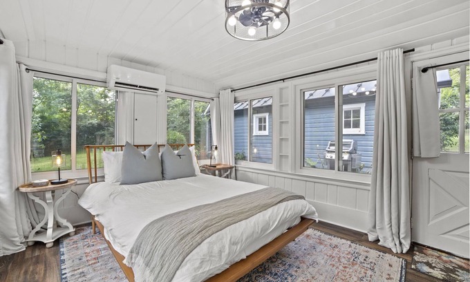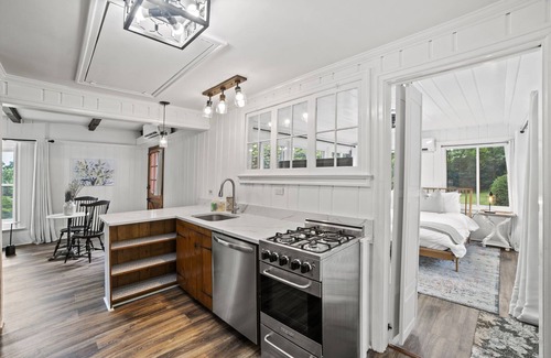 The Cottage at Bluemont Escape is located in historic Loudoun County and includes a full kitchen, two bedrooms, a hot tub, and a private patio. This home sits on five acres with two other units.