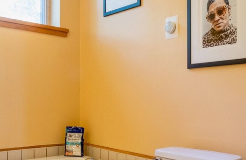 The downstairs full bathroom features a full-size tub for a relaxing bath after a day of hiking, the Epsom-salts will be here waiting for you. The upstairs full baths shower features walls of patterned glass brick for the ultimate light-flooded yet completely private shower experience.
